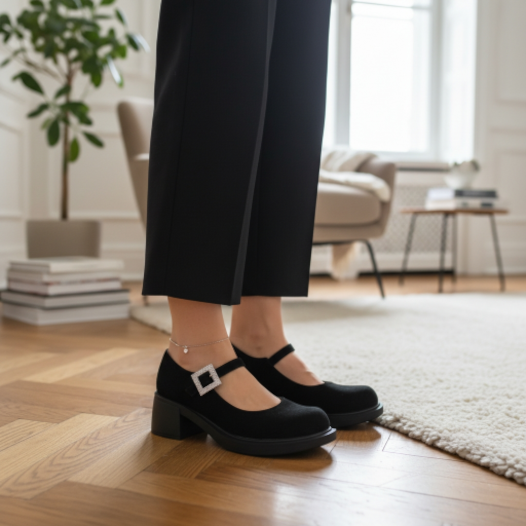 Capone Mary Jane cipele štikla crna